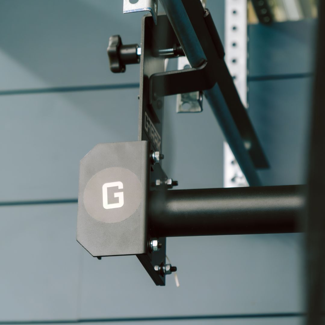 Push the button down and the G-TRAK impact screen unrolls from the crossbar into place. When done playing/practicing, simply push the up button and G-TRAK retracts around the crossbar for storage.